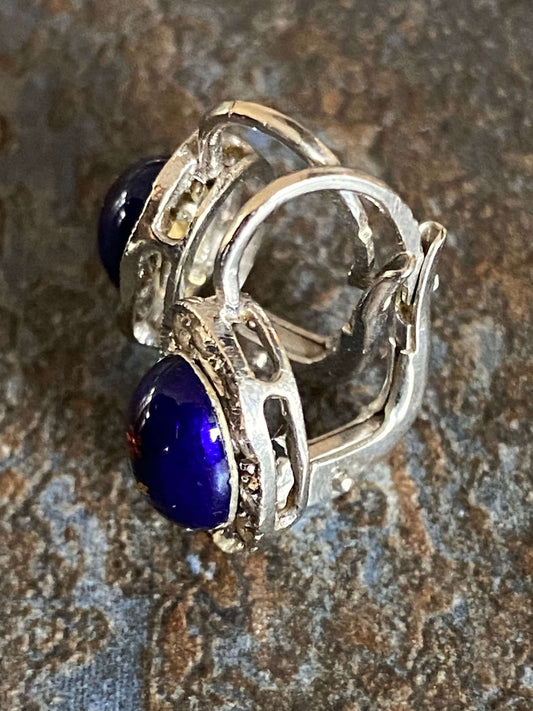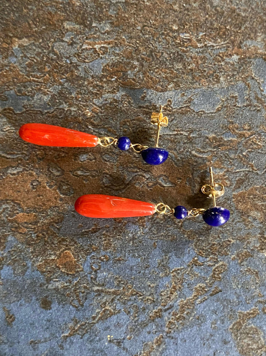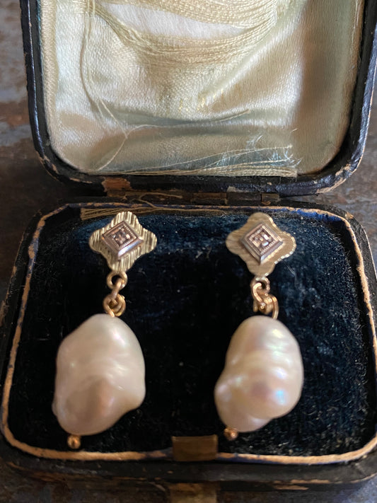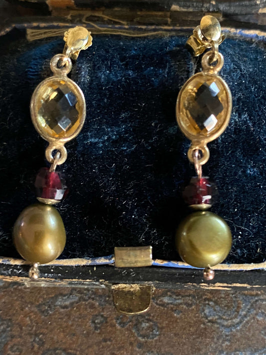 Earrings with tourmaline, an antique garnet and an Akoya pearl